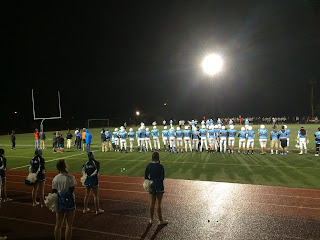 We had to line up with our parents at the field at 6:30 pm. First all the bandmembers were presented, than the cheerleaders. When our Names were called we had to to the field, while everybody was cheering. I was presented as: 'Malin Altenburger with her host parents Christine and Jim'